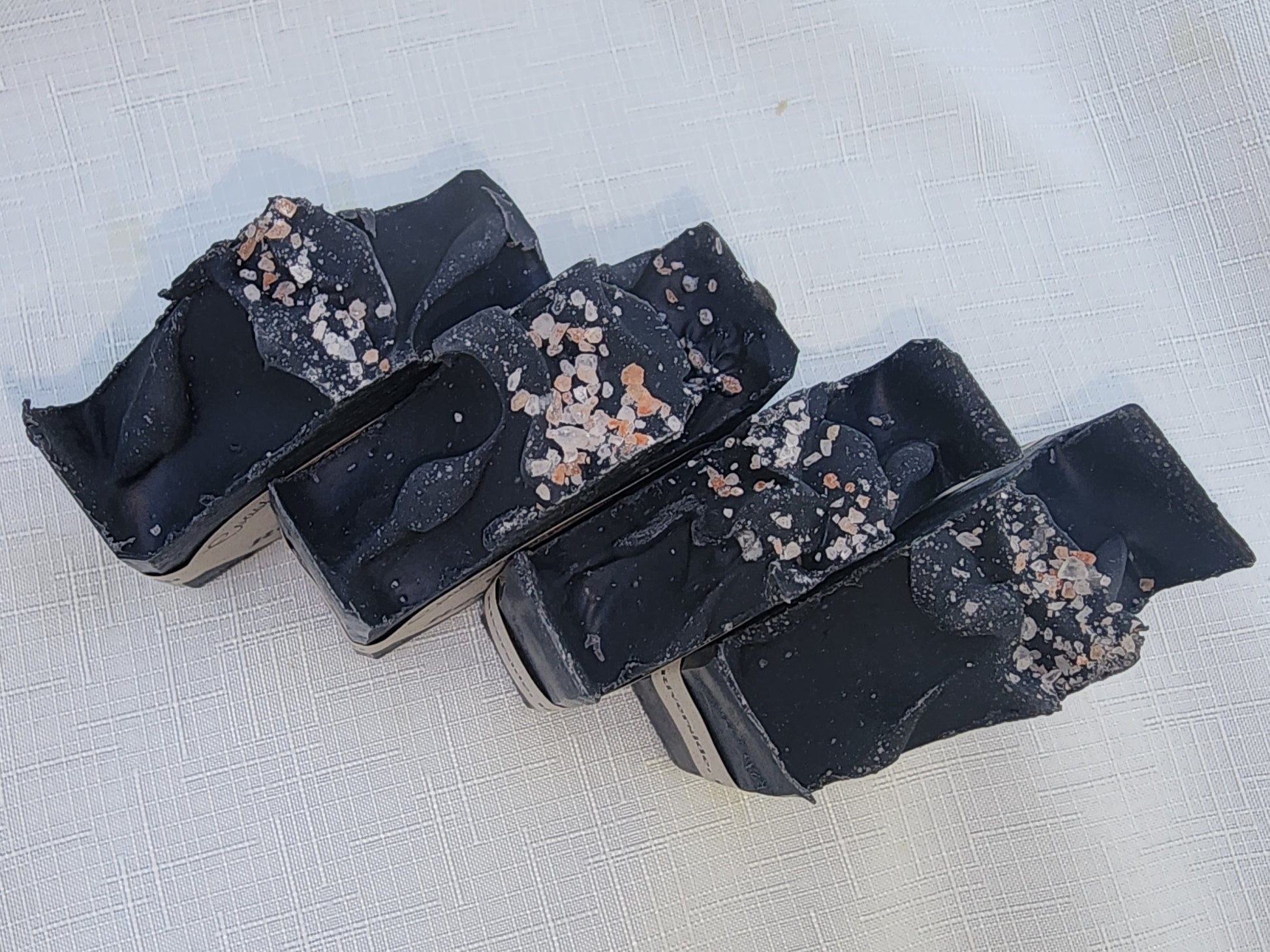 Ingredients: Distilled water, saponified olive oil, coconut oil, shea butter, almond oil, kokum butter, mango seed butter, and castor oil. Activated charcoal and peppermint, rosemary, and patchouli essential oil.