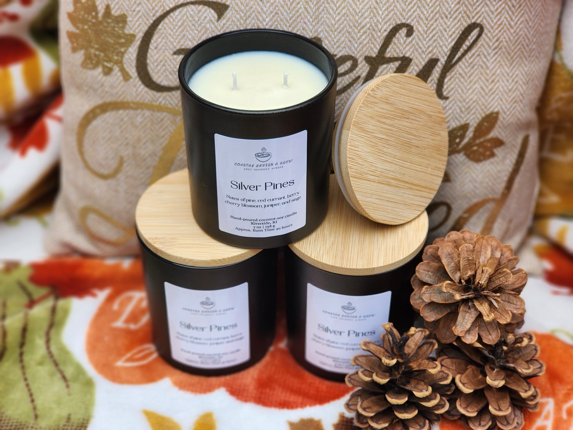 Hand-poured with clean-burning coconut wax, Silver Pines balances freshness and depth, creating an atmosphere that’s both invigorating and serene—perfect for crisp mornings, holiday gatherings, or quiet evenings by the fire.